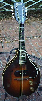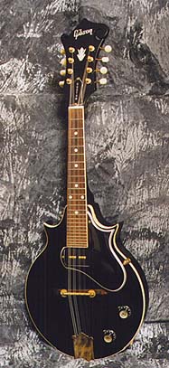 Gibson's electric mandolin models include the EM200 solidbody (right). The two-point "florentine" body shape featured a single P90 pickup and was produced between 1954 and 71. They also sold the model 150 (center)-- an acoustic/electric until 1971 and two others in the 1940's. Roberts and Saga/Kentucky also built commercial instruments. Roberts produced the Tiny Moore and Jazz 5 models, and Kentucky sold a mandolin with a string-bender based on the mechanism used by Clarence White of the Byrds. Currently, you can buy a Blue Star instrument from Elderly.